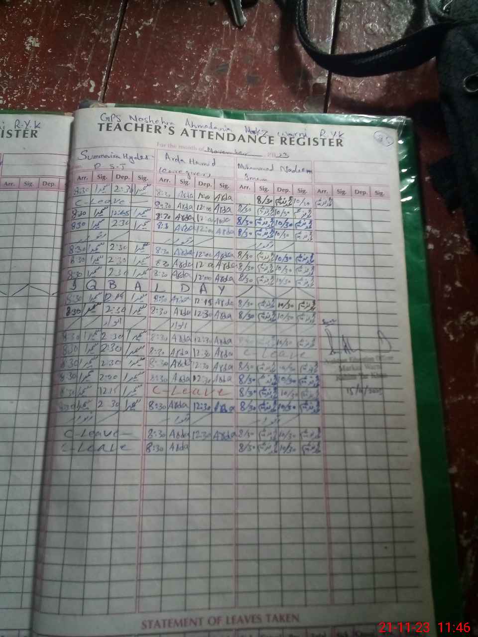 | Monitoring Date: 21-11-2023 | Start Time: 21-11-2023 11:06 AM | End Time: 21-11-2023 11:57 AM | Name of MEA: Ab**** Re**** | |