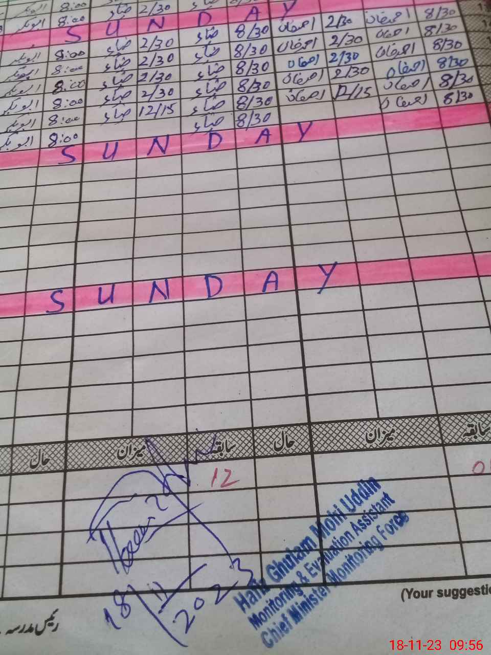 | Monitoring Date: 18-11-2023 | Start Time: 18-11-2023 09:45 AM | End Time: 18-11-2023 10:12 AM | Name of MEA: HA**** GH**** MO**** UDDI**** | |