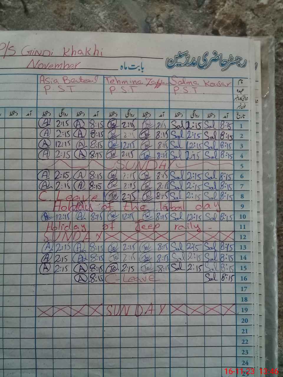 | CNIC | Full Name | Designation | R/C | Absence During Last Calender Month |