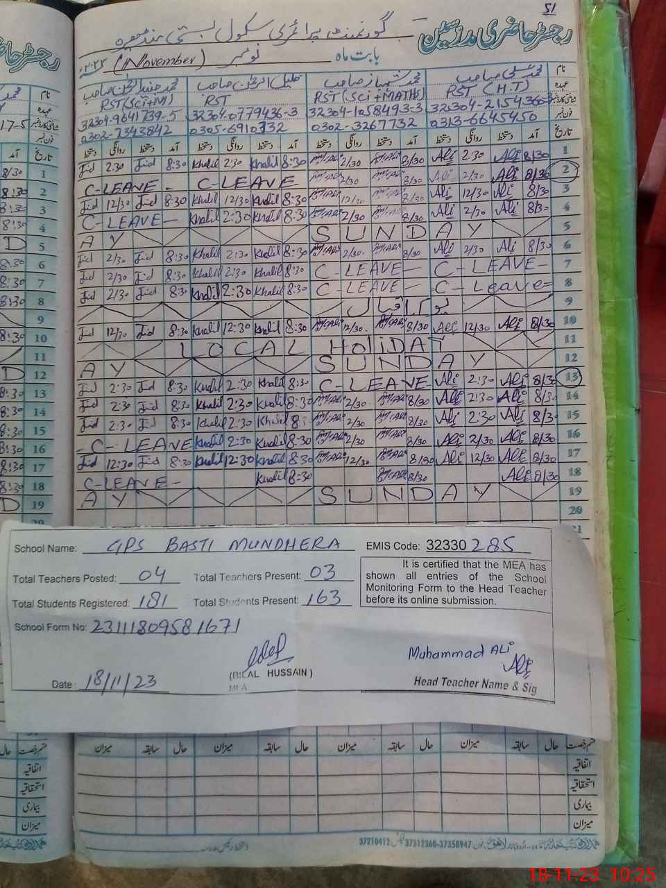 | EMIS Code: 32330285 | Name of School: GPS BASTI MUNDHERA | |||
