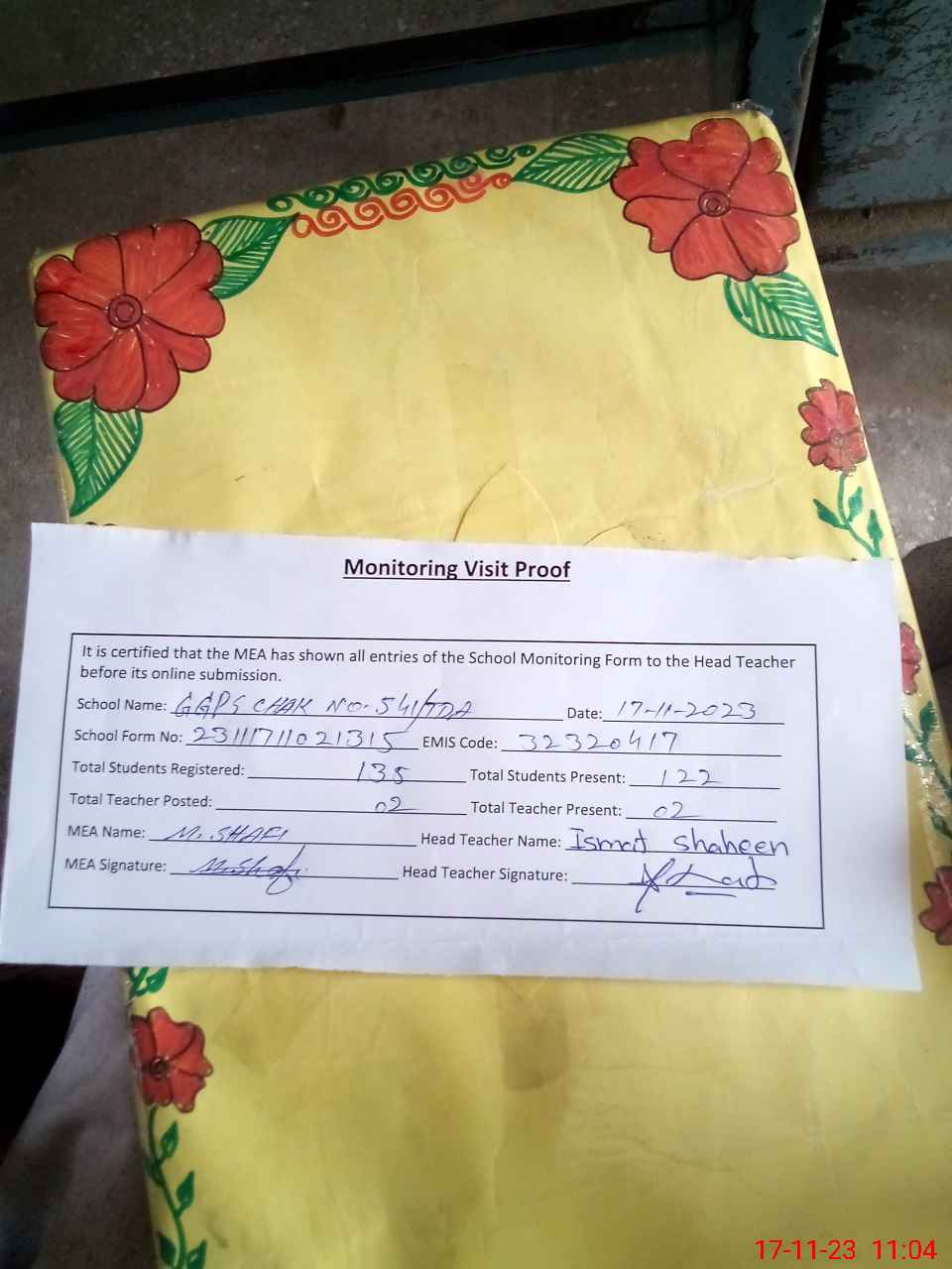 | EMIS Code: 32320417 | Name of School: GGPS CHAK NO. 541 TDA | |||