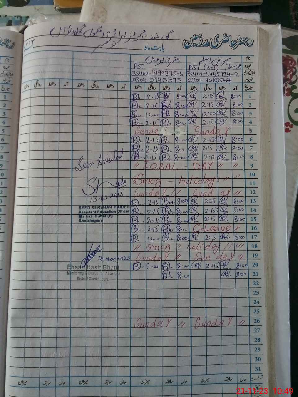 | Name: Ma**** As**** Designation: (School Headmaster's/Headmistress's) PST Phone/Cell Number: 03**** |