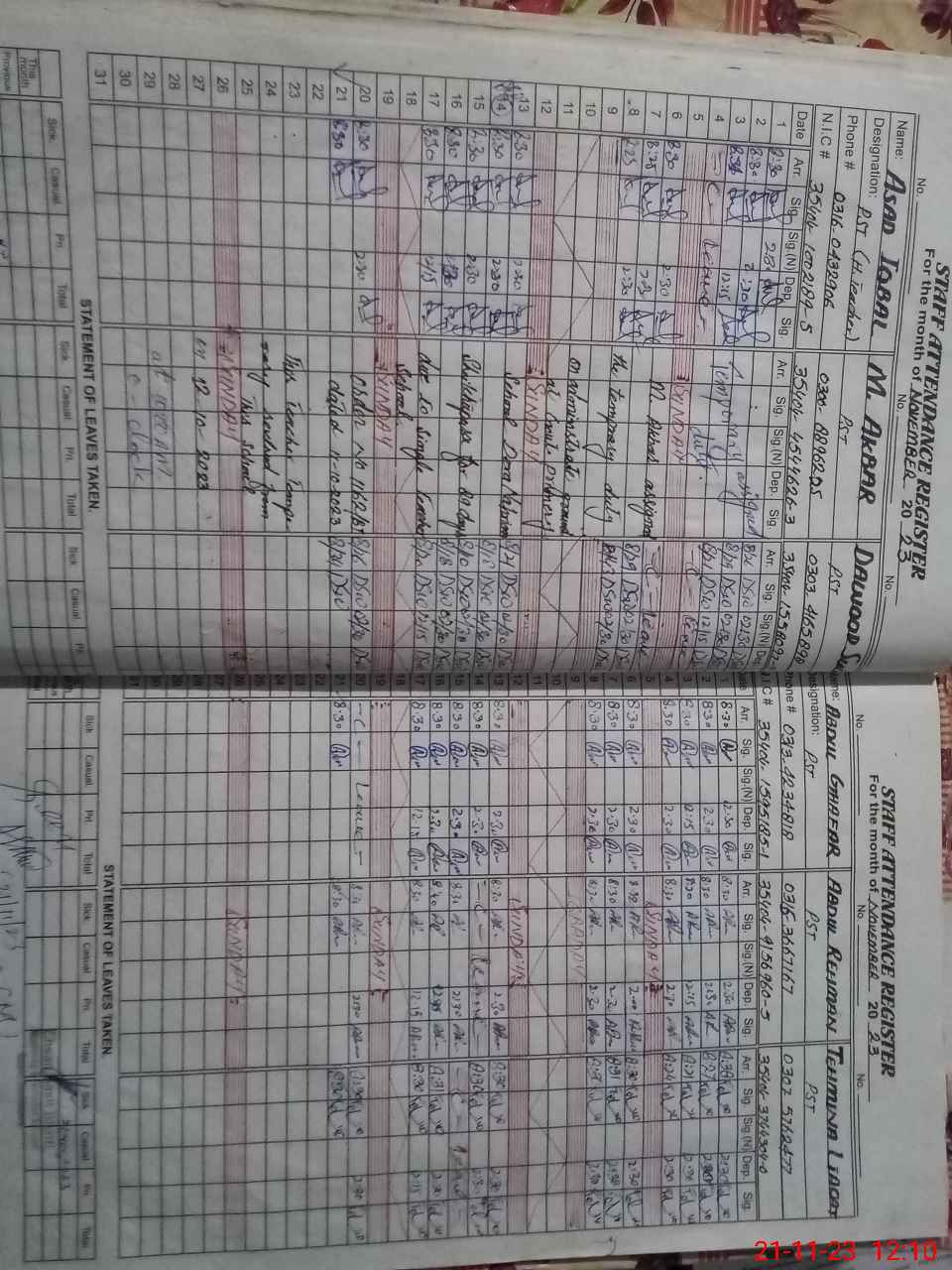 | CNIC | Full Name | Designation | R/C | Absence During Last Calender Month |