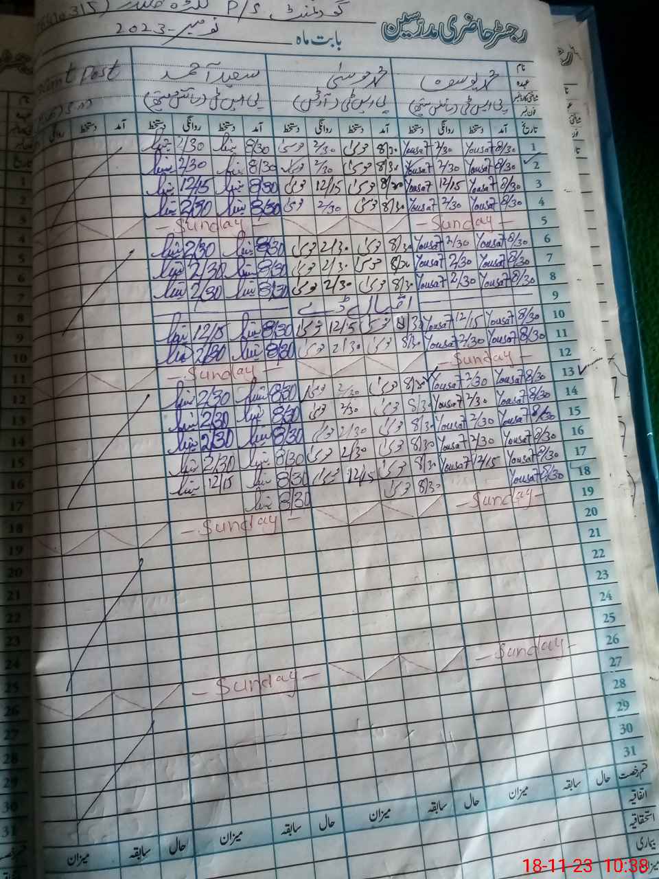 | CNIC | Full Name | Designation | R/C | Absence During Last Calender Month |