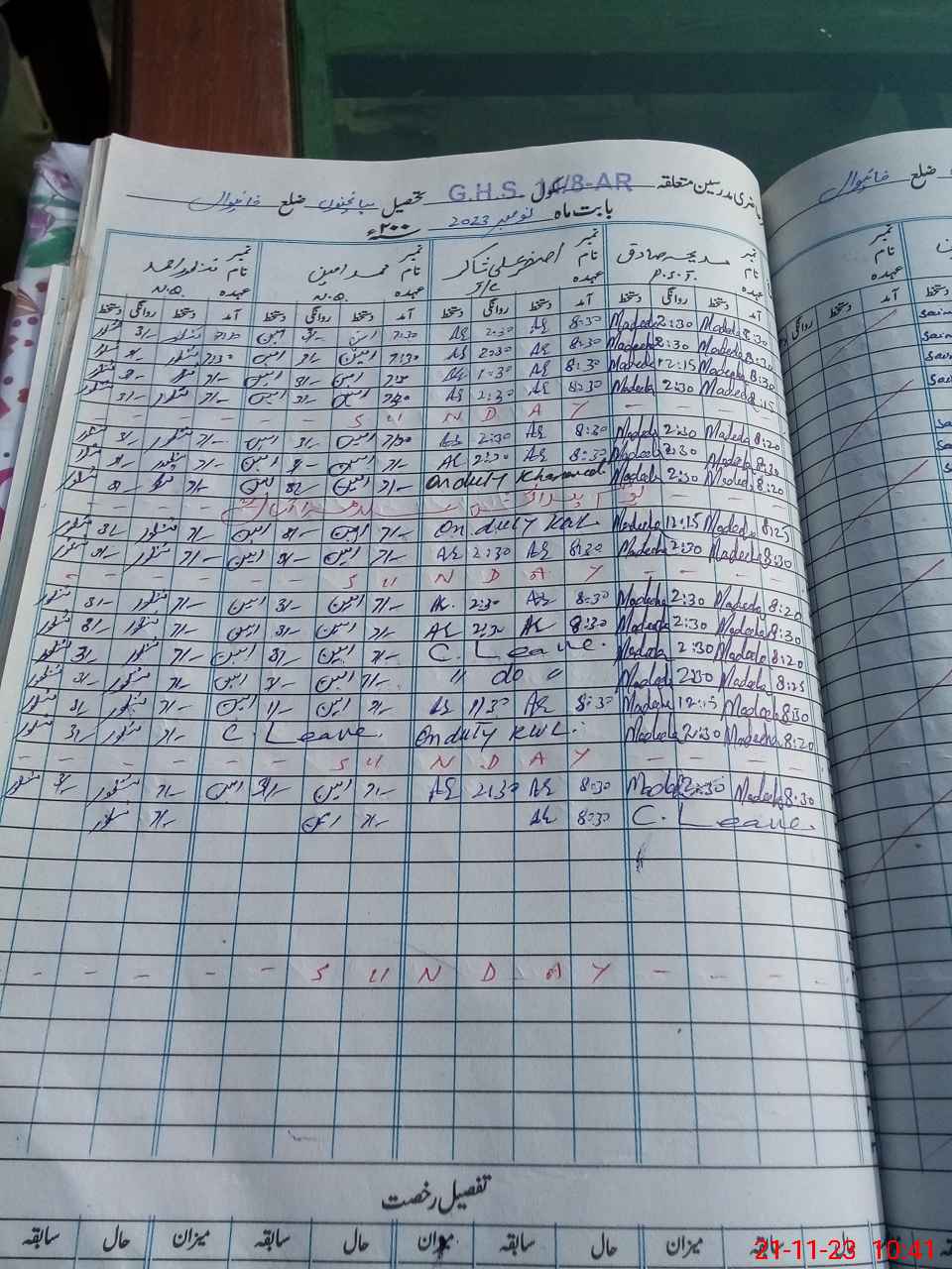 | CNIC | Full Name | Designation | R/C | Absence During Last Calender Month |