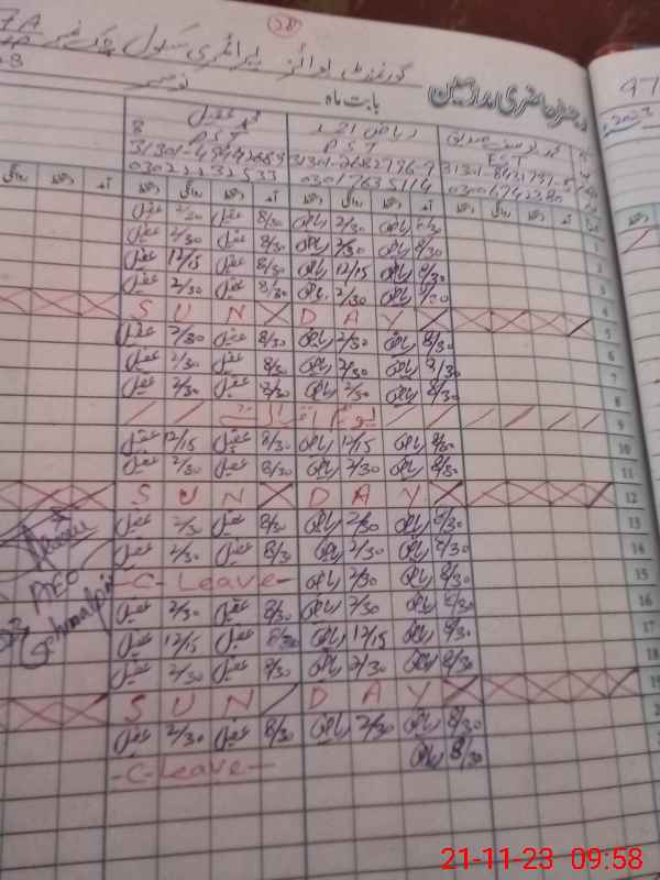 | CNIC | Full Name | Designation | R/C | Absence During Last Calender Month |