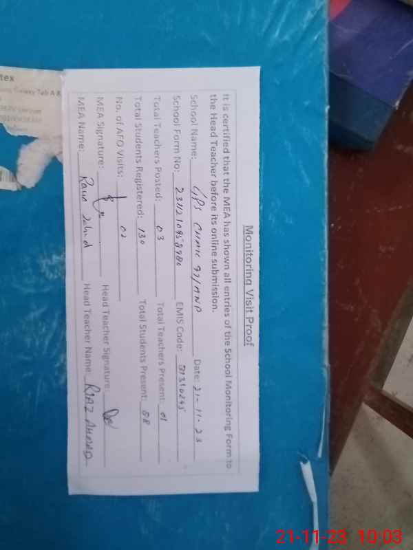 | Attendance Register | Head Teacher | MEA with School | Visit Proof |