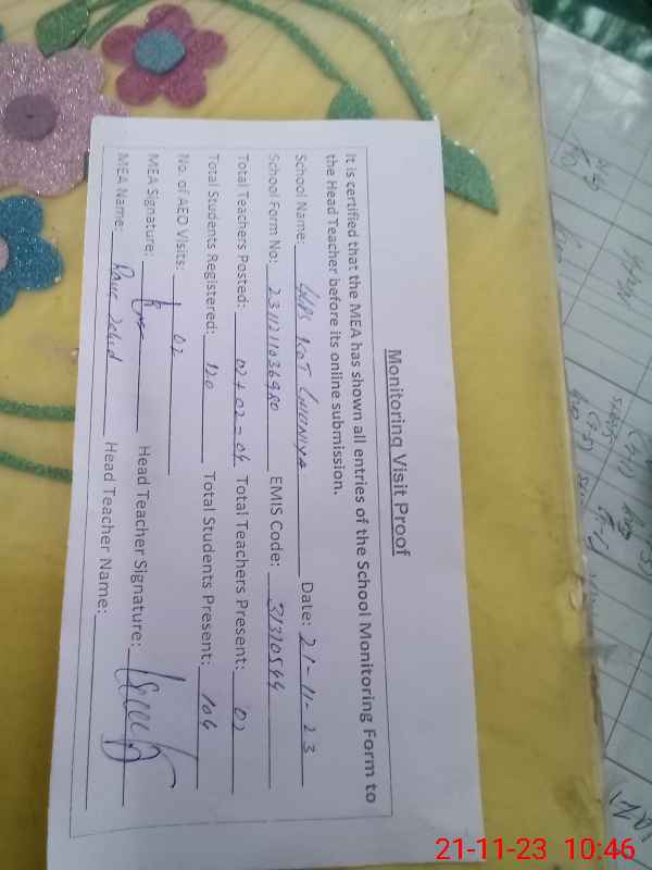 | EMIS Code: 31310544 | Name of School: GGPS KOT GUHINYA MOUZA | |||