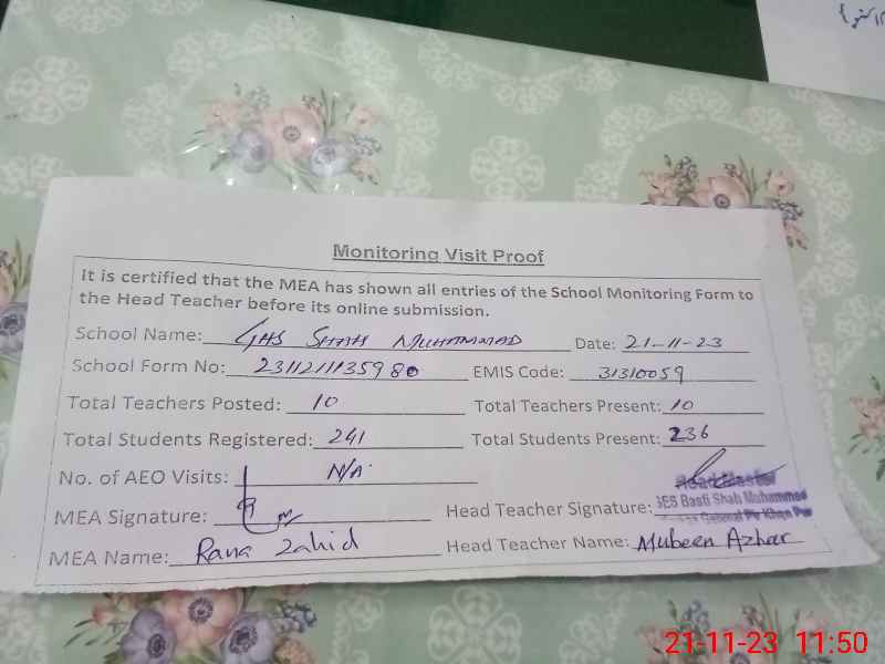 | EMIS Code: 31310059 | Name of School: GHS BASTI SHAH MUHAMMAD | |||