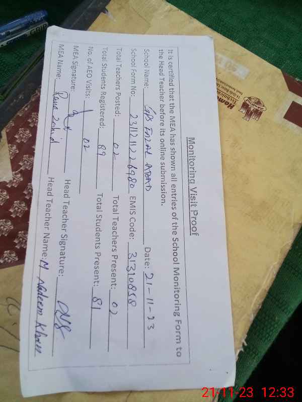 | EMIS Code: 31310858 | Name of School: GPS FAZAL ABAD | |||