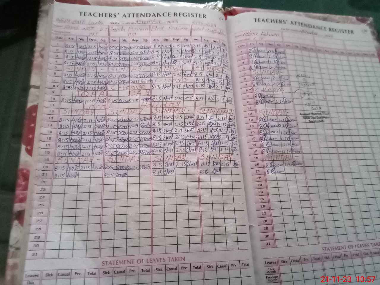 | Leave | Duty | Absent | Maternity | Medical | Ex- Pak |