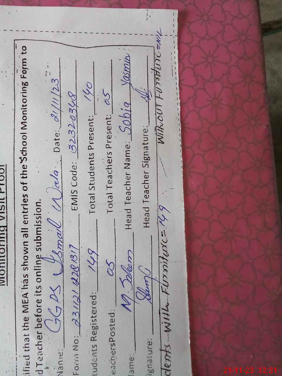 | EMIS Code: 32320348 | Name of School: GGPS ISMAIL WALA | |||