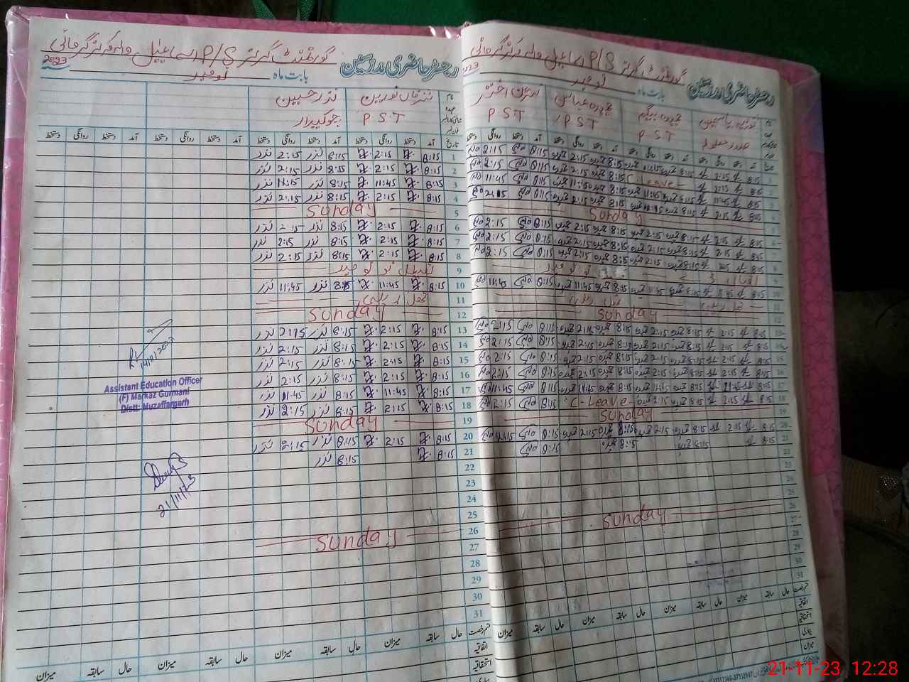 | CNIC | Full Name | Designation | R/C | Absence During Last Calender Month |
