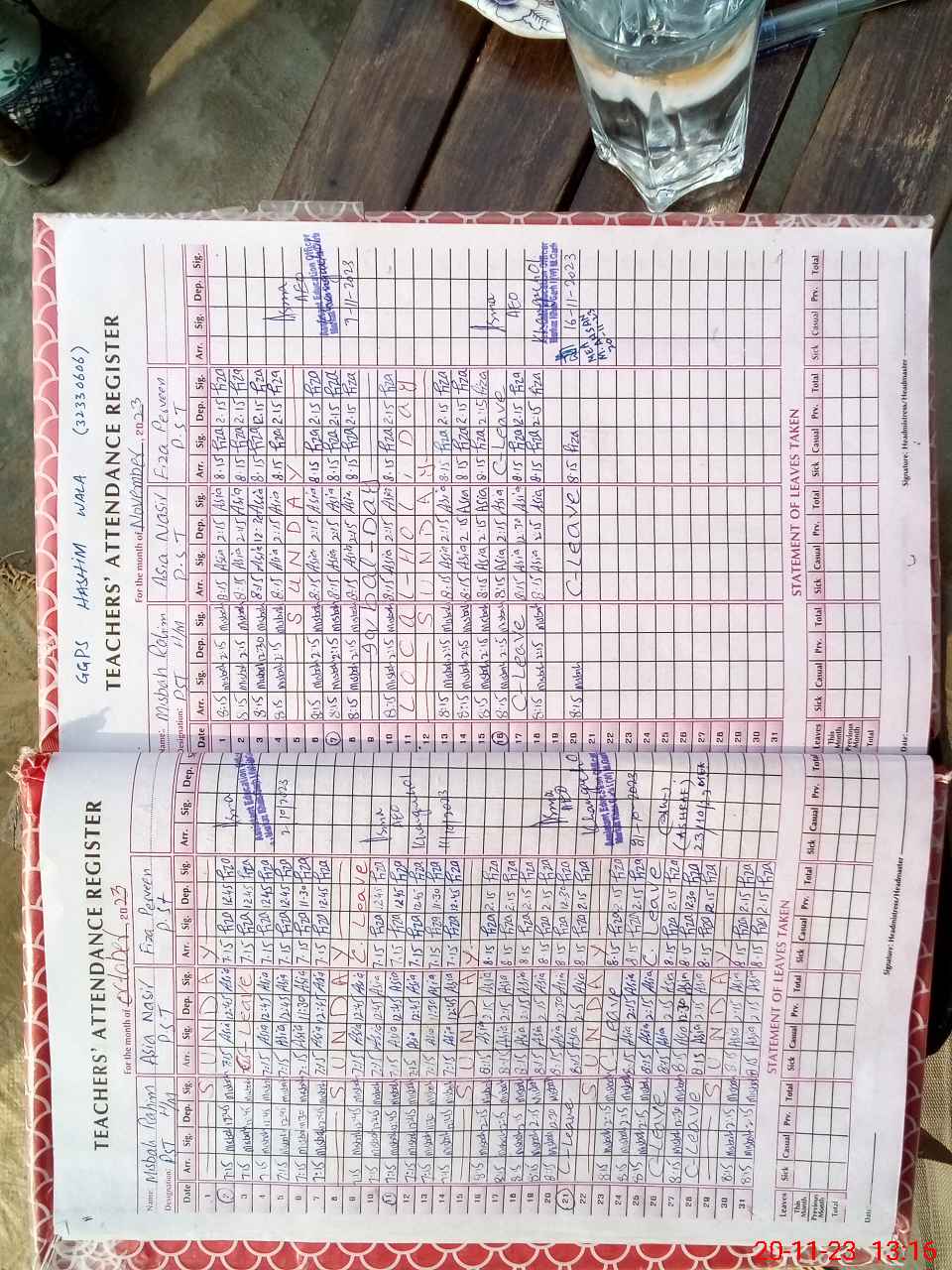 | CNIC | Full Name | Designation | R/C | Absence During Last Calender Month |