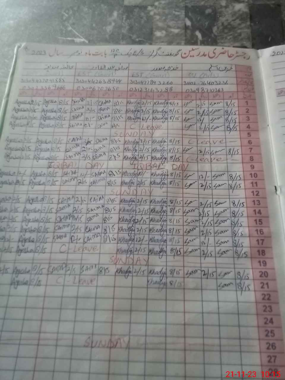 | 31**** | Kh**** Pa**** | 1 | 1 | 0 | 0 | 0 | 0 | 0 | 0 | 0 | 0 | 0 | Casual |