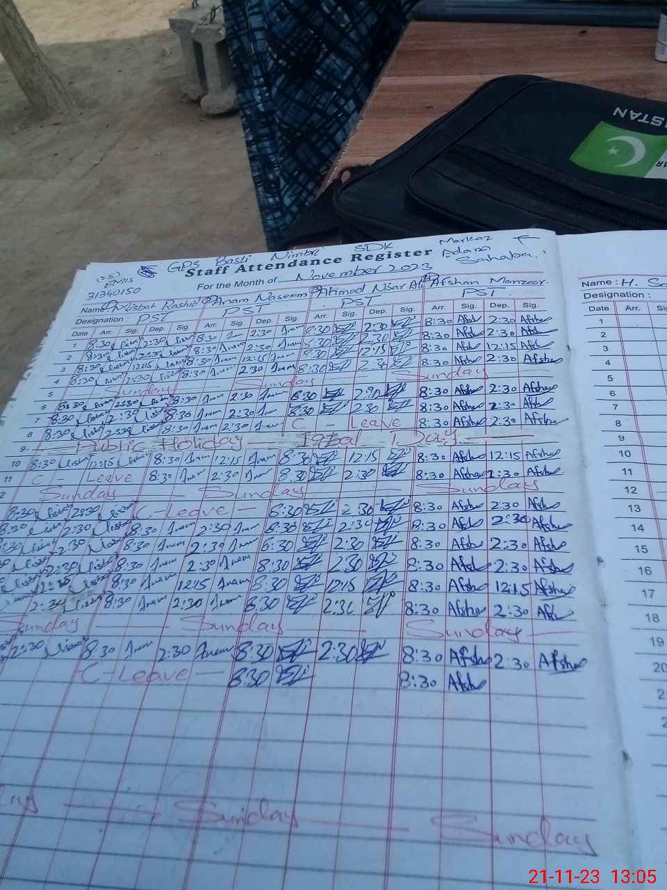 | CNIC | Full Name | Designation | R/C | Absence During Last Calender Month |