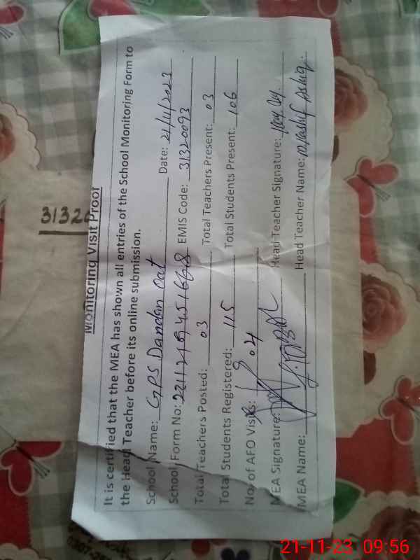 | EMIS Code: 31320093 | Name of School: GPS DANDAN OAT | |||