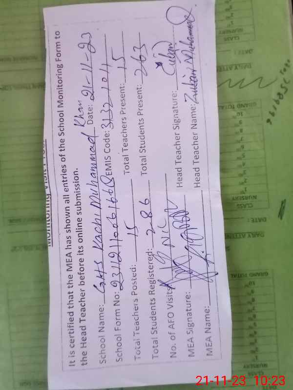 | EMIS Code: 31321011 | Name of School: GHS KACHI MUHAMMAD KHAN | |||
