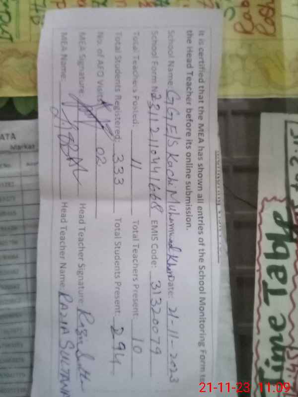 | EMIS Code: 31320079 | Name of School: GGES KACHI MUHAMMAD KHAN | |||
