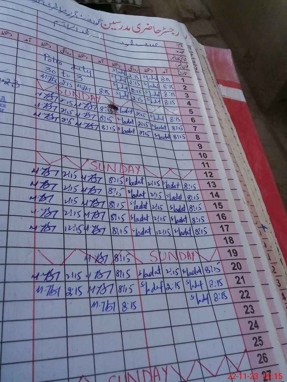 | CNIC | Full Name | Designation | R/C | Absence During Last Calender Month |