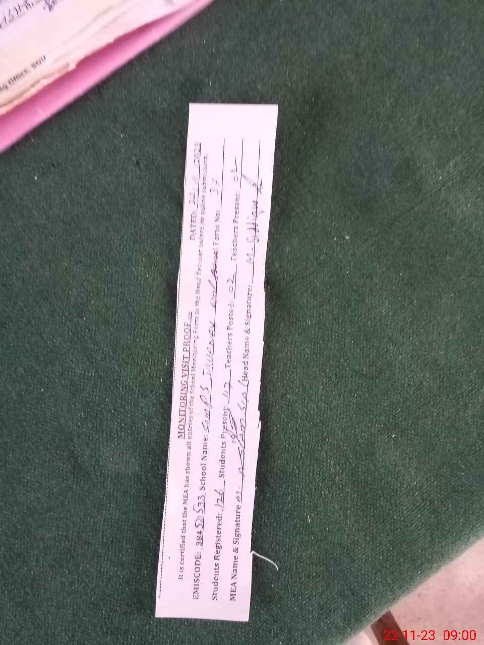 | Attendance Register | Head Teacher | MEA with School | Visit Proof |