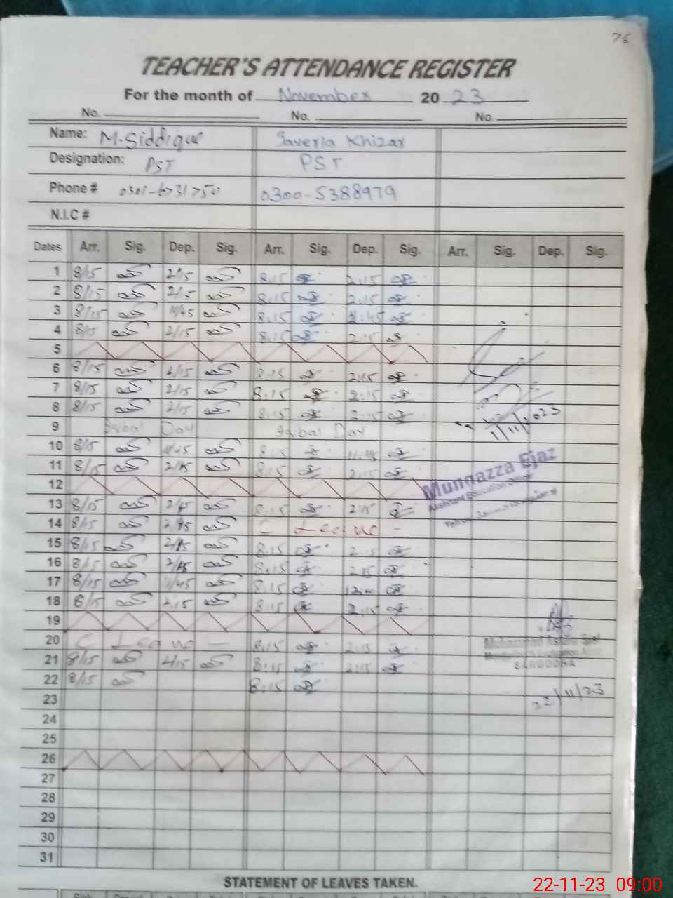 | Name: JA**** KH**** Designation: (School Headmaster's/Headmistress's) PST Phone/Cell Number: 03**** |