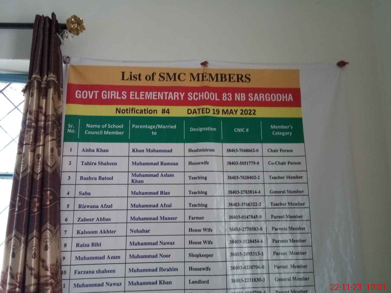 | Name: AI**** KH**** Designation: (School Headmaster's/Headmistress's) SST (PHY-MATH) Phone/Cell Number: 03**** |
