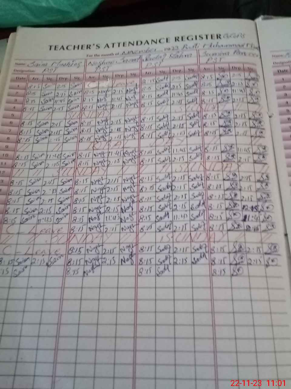 | CNIC | Full Name | Designation | R/C | Absence During Last Calender Month |