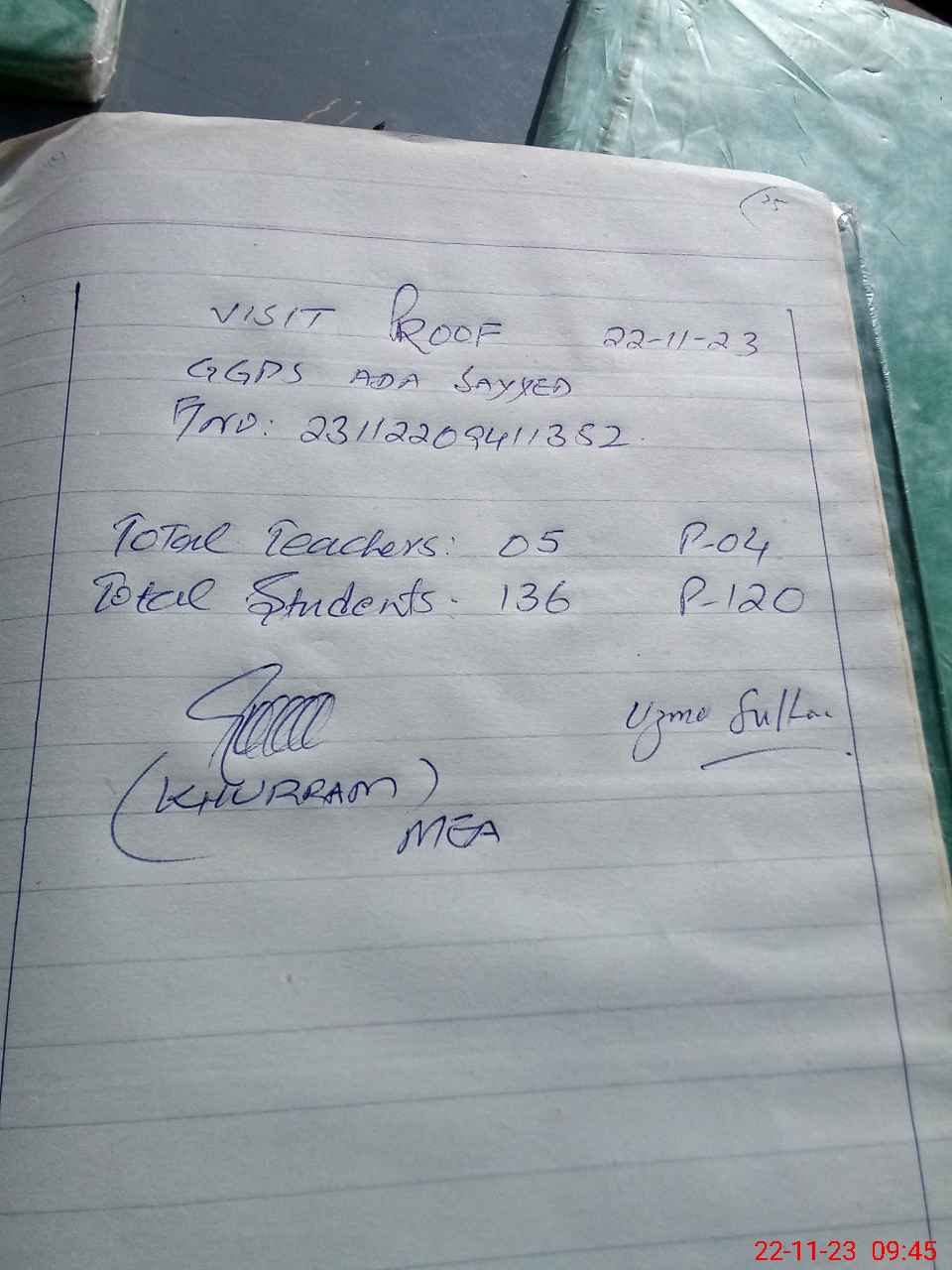 | Attendance Register | Head Teacher | MEA with School | Visit Proof |