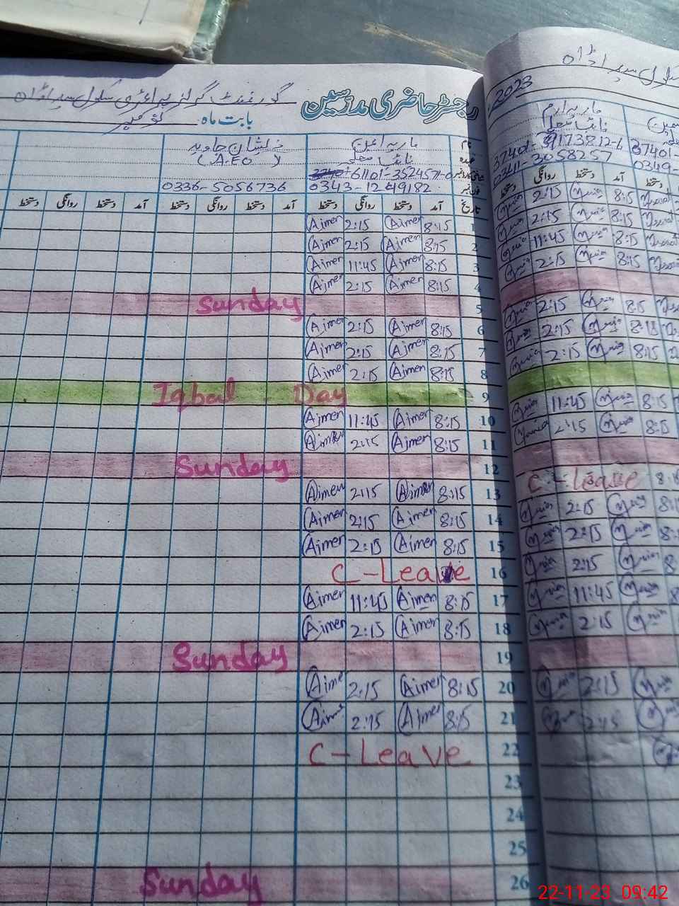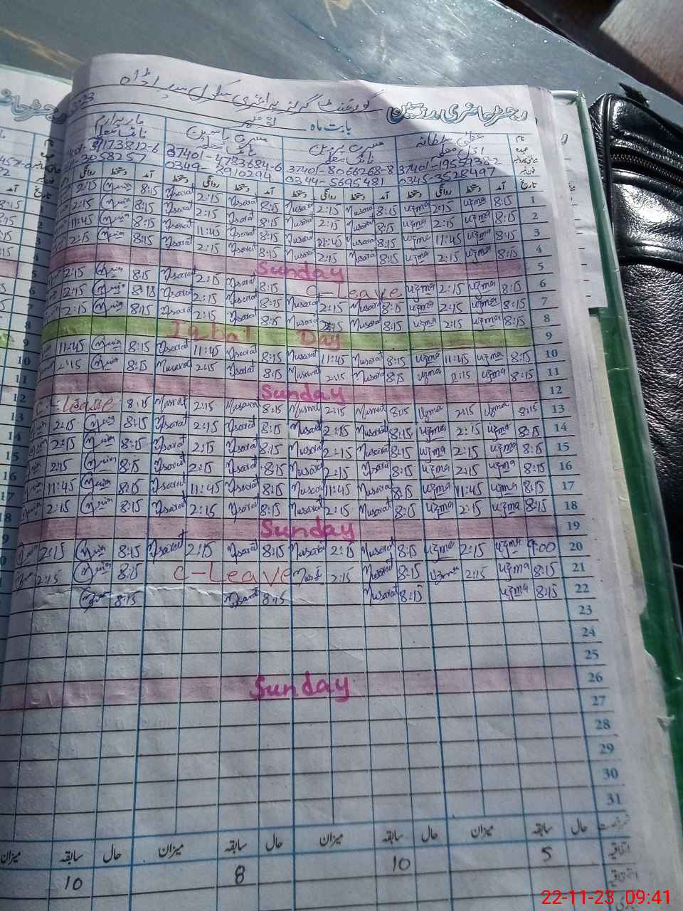 | CNIC | Full Name | Designation | R/C | Absence During Last Calender Month |