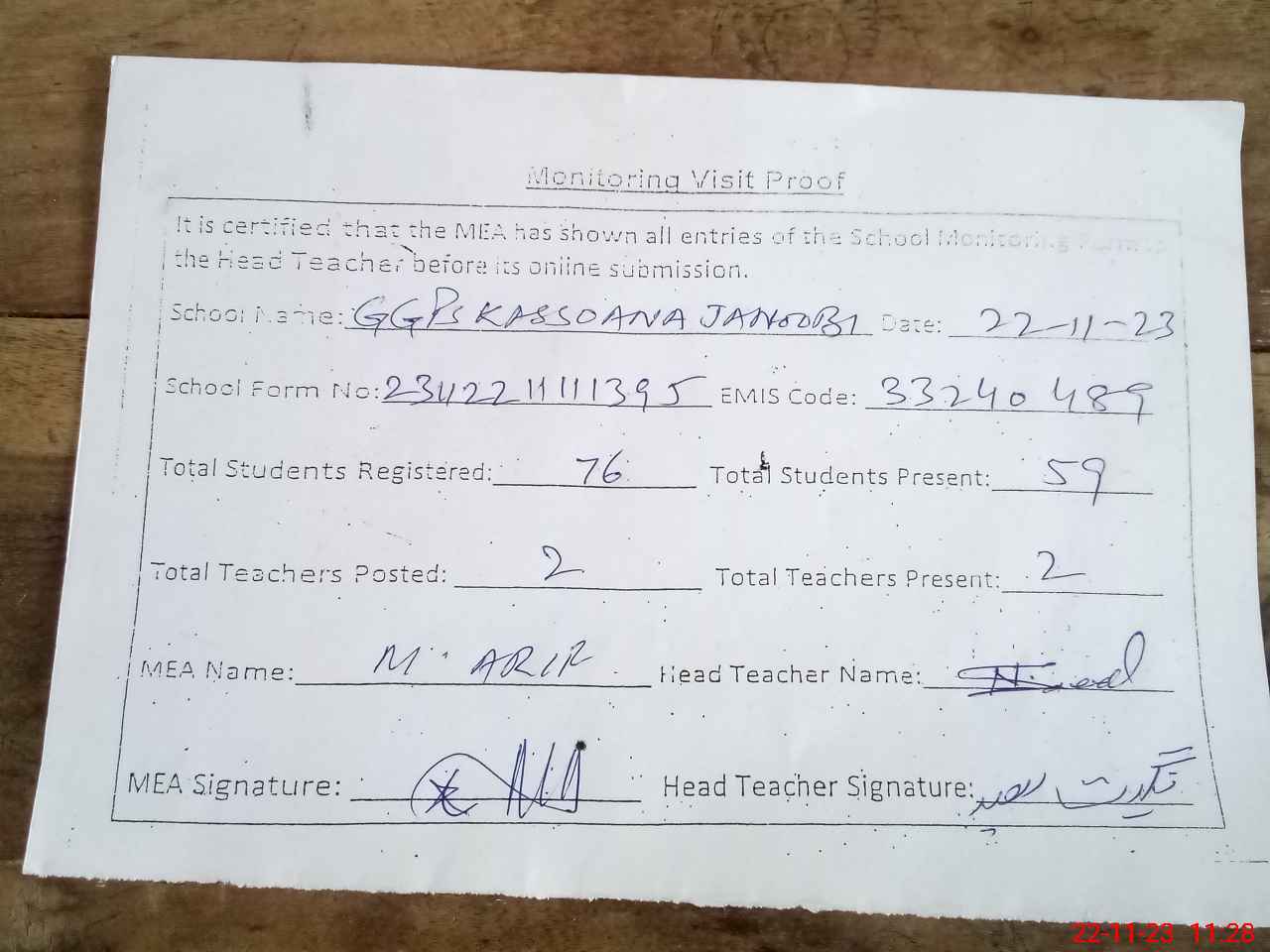 | EMIS Code: 33240489 | Name of School: GGPS KASSOANA JANOBI | |||