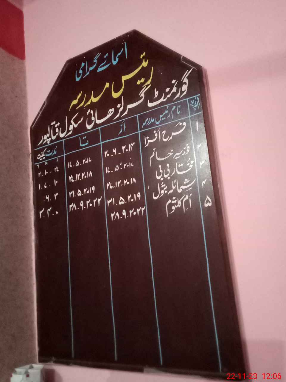 | EMIS Code: 36410036 | Name of School: GGHS QATAL PUR, SARAI SIDHU | |||