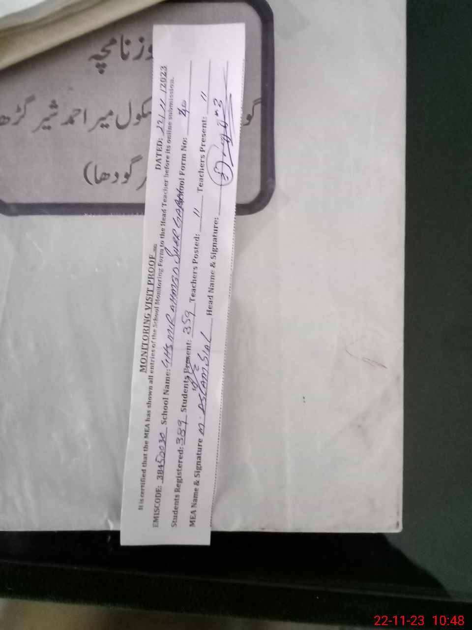 | Attendance Register | Head Teacher | MEA with School | Visit Proof |