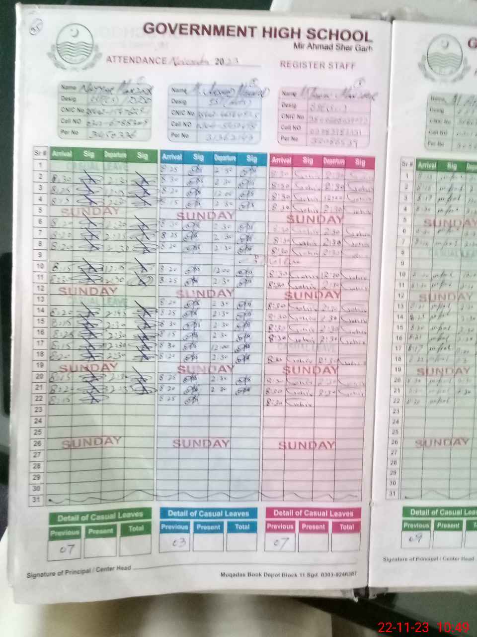 | CNIC | Full Name | Designation | R/C | Absence During Last Calender Month |