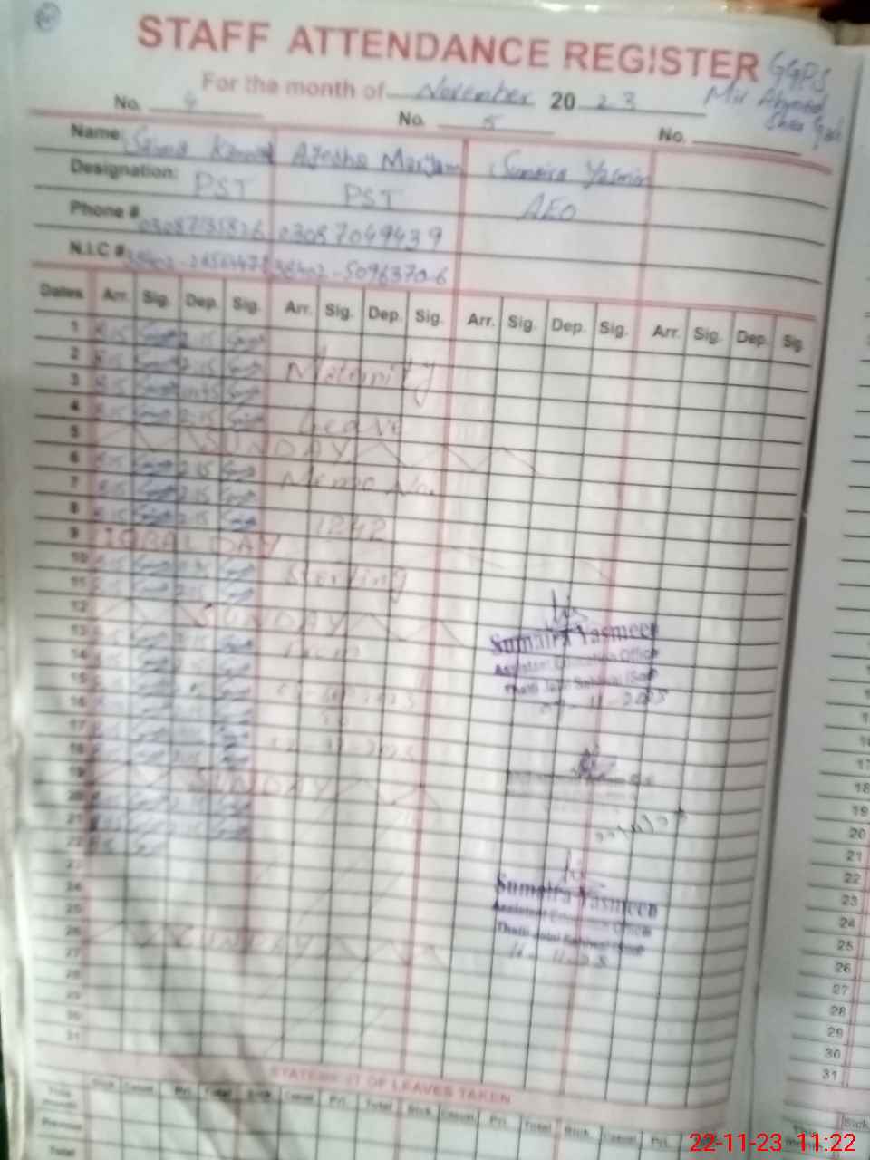 | Name: AY**** MA**** Designation: (School Headmaster's/Headmistress's) PST Phone/Cell Number: 03**** |