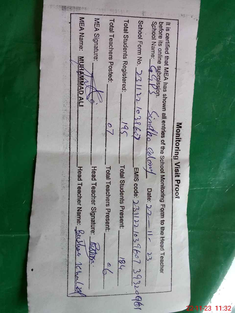 | EMIS Code: 39320961 | Name of School: GGPS MC SINDHO COLONY | |||