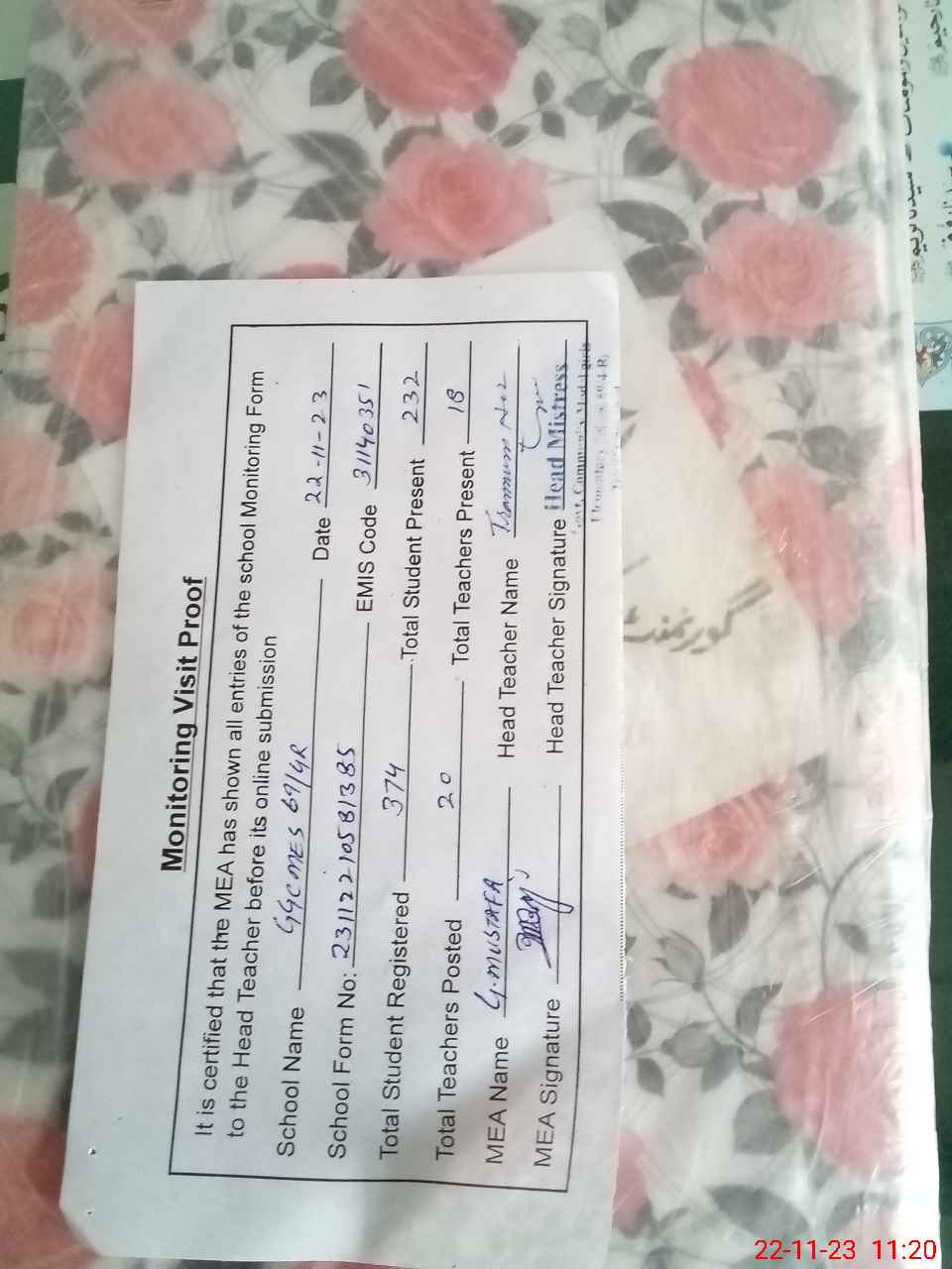 | EMIS Code: 31140351 | Name of School: GGCMES CHAK NO. 69/4-R | |||