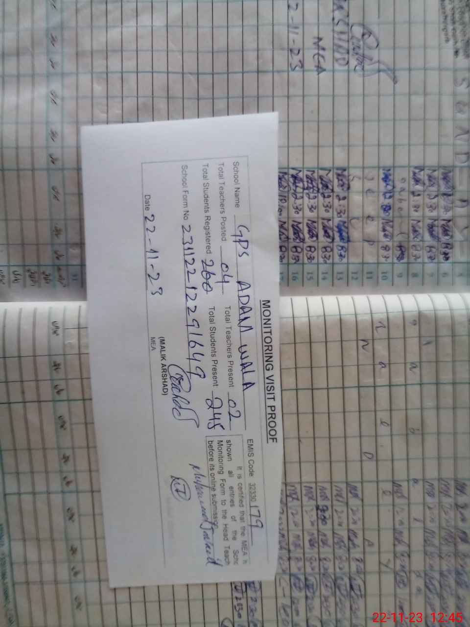 | EMIS Code: 32330179 | Name of School: GPS ADAM WALA | |||