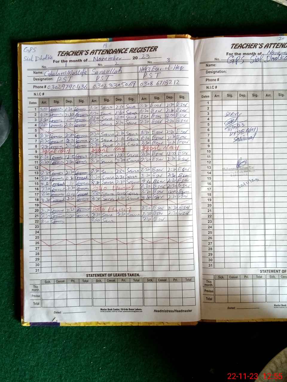 | Name: GH**** MU**** Designation: (School Headmaster's/Headmistress's) PST Phone/Cell Number: 03**** |