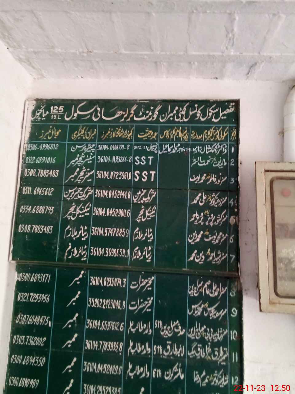 | EMIS Code: 36430043 | Name of School: GGHS 125/15-L, MIAN CHANNU | |||