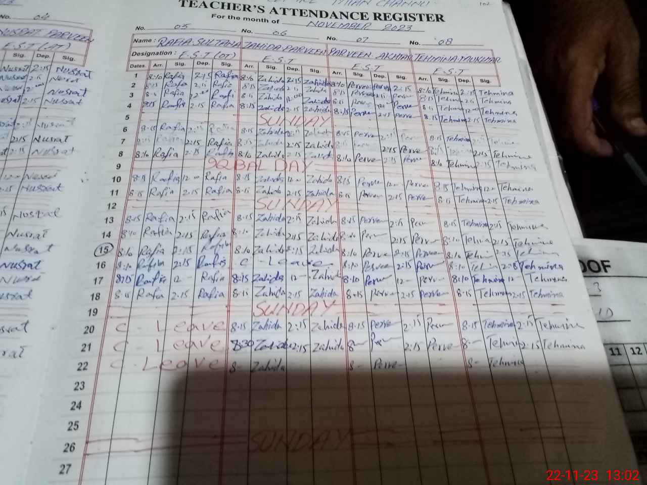| CNIC | Full Name | Designation | R/C | Absence During Last Calender Month |