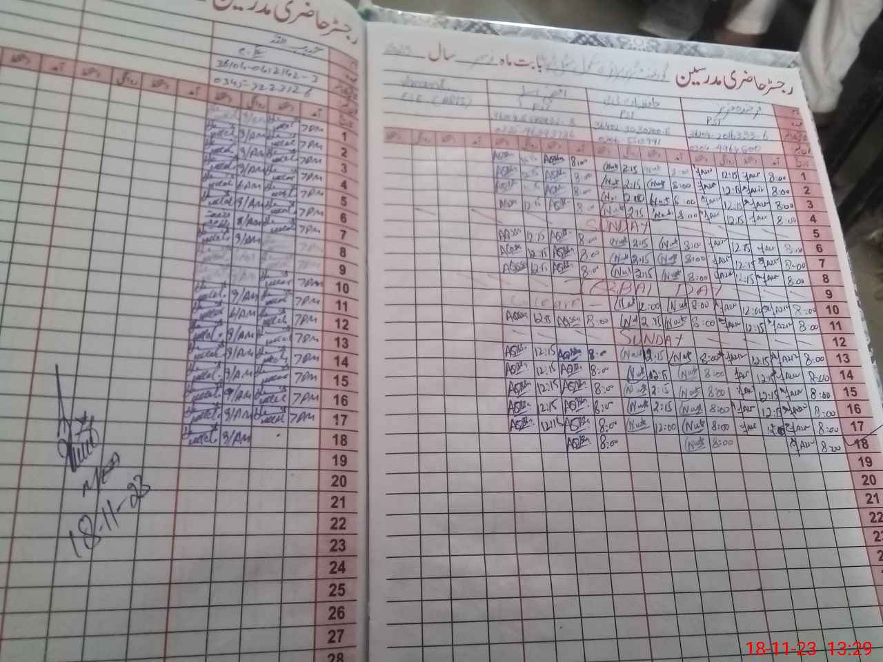 | CNIC | Full Name | Designation | R/C | Absence During Last Calender Month |