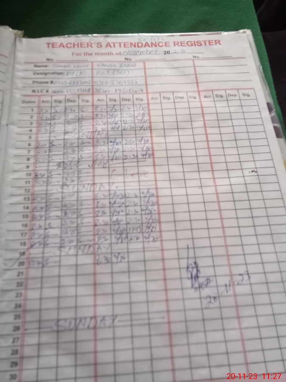 | Name: SH**** IQ**** Designation: (School Headmaster's/Headmistress's) PST Phone/Cell Number: 03**** |