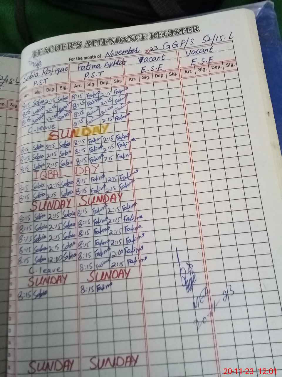 | Name: SO**** RA**** Designation: (School Headmaster's/Headmistress's) PST Phone/Cell Number: 03**** |