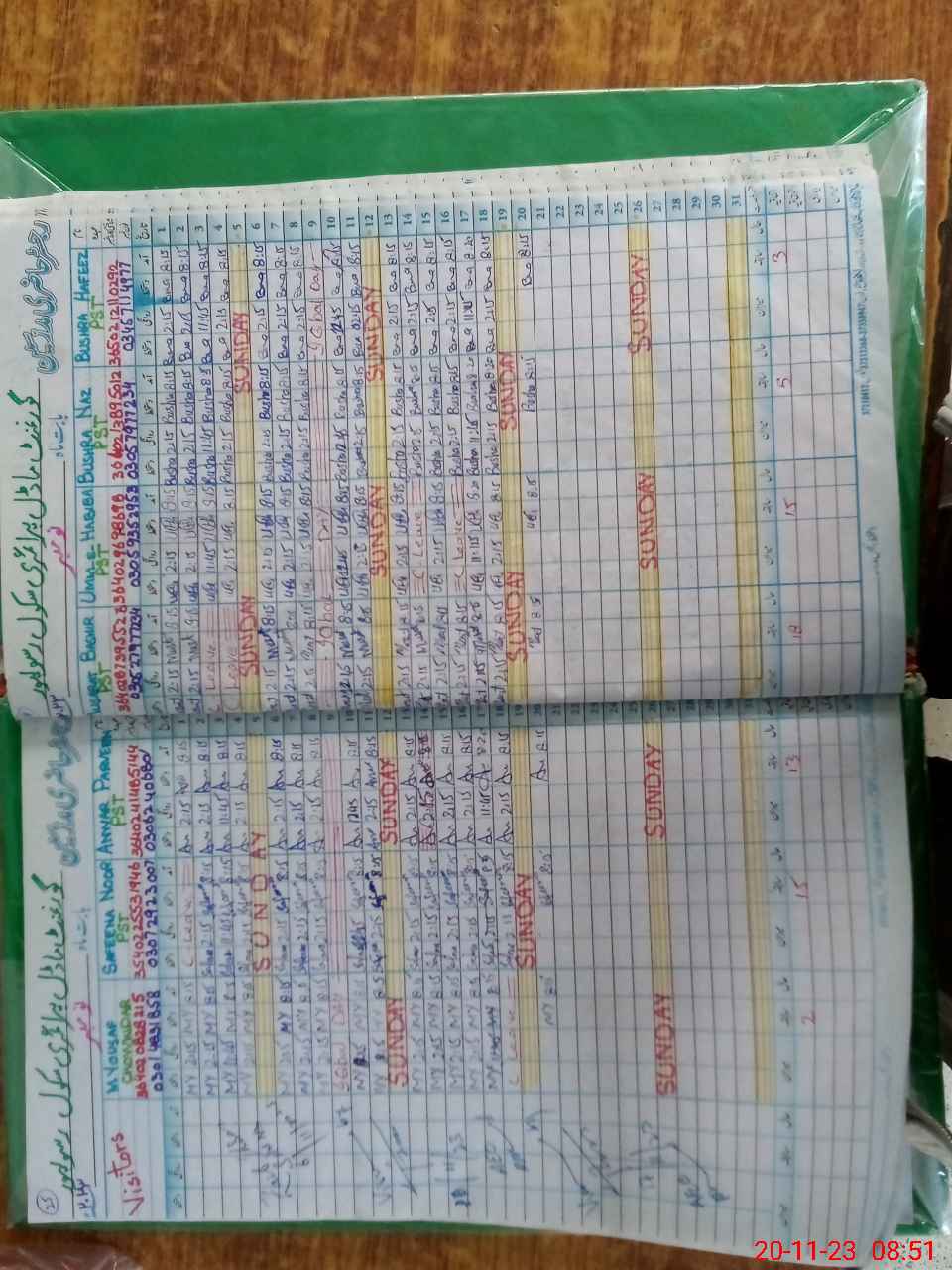 | School Visited by School Health & Nutrition Supervisor (No. of Visits) | 1 | Name1: | Zaib Ihsan | Name2: | Nil |