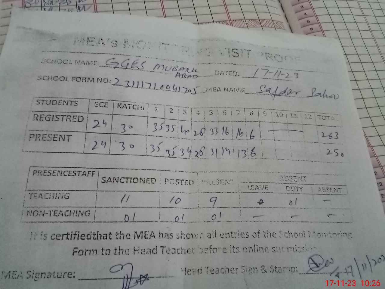 | EMIS Code: 36410557 | Name of School: GGES MUBARAK ABAD, ABDUL HAKIM | |||