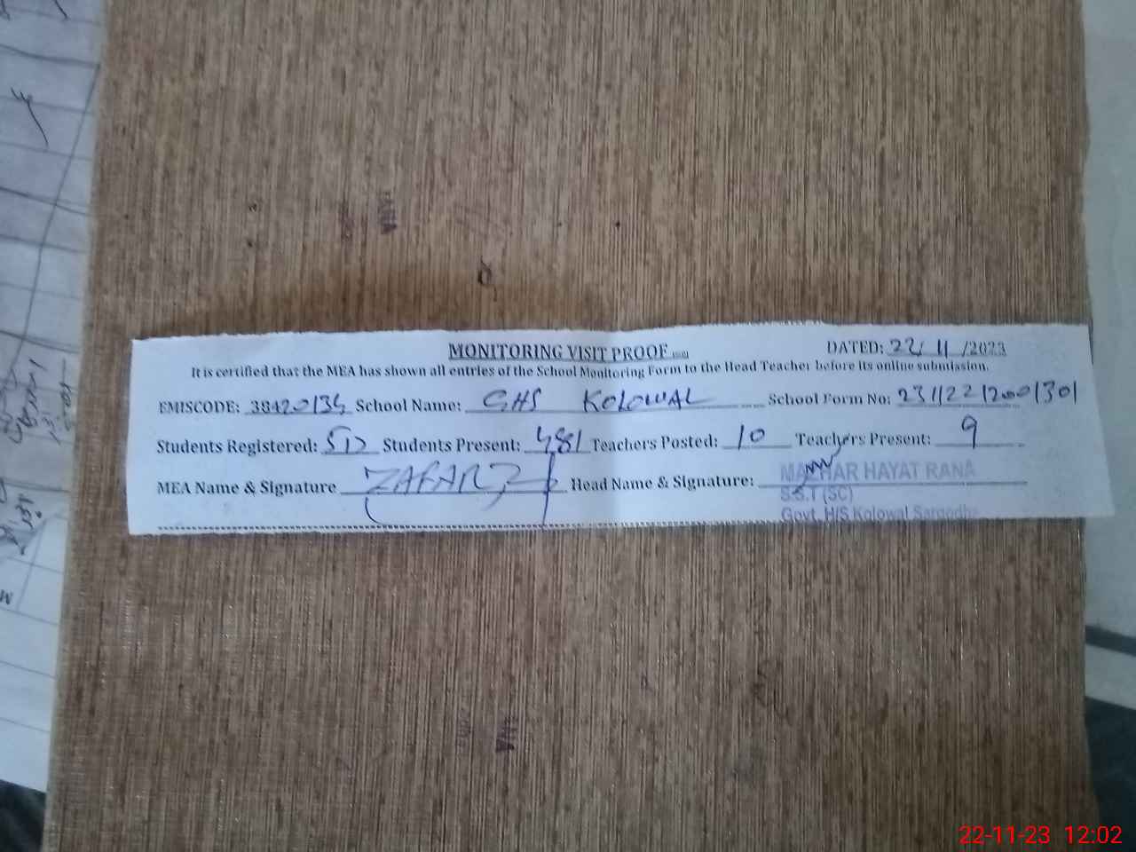 | EMIS Code: 38420134 | Name of School: GHS KOLOWAL NANGIANA | |||