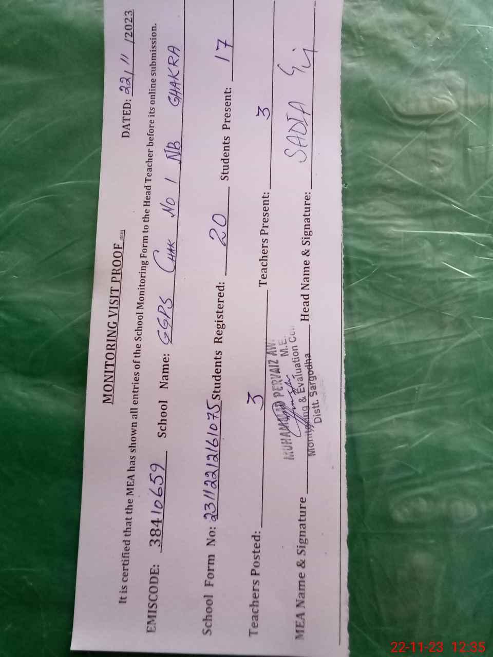 | EMIS Code: 38410659 | Name of School: GGPS CHAK NO.1 NB GHAKRA | |||