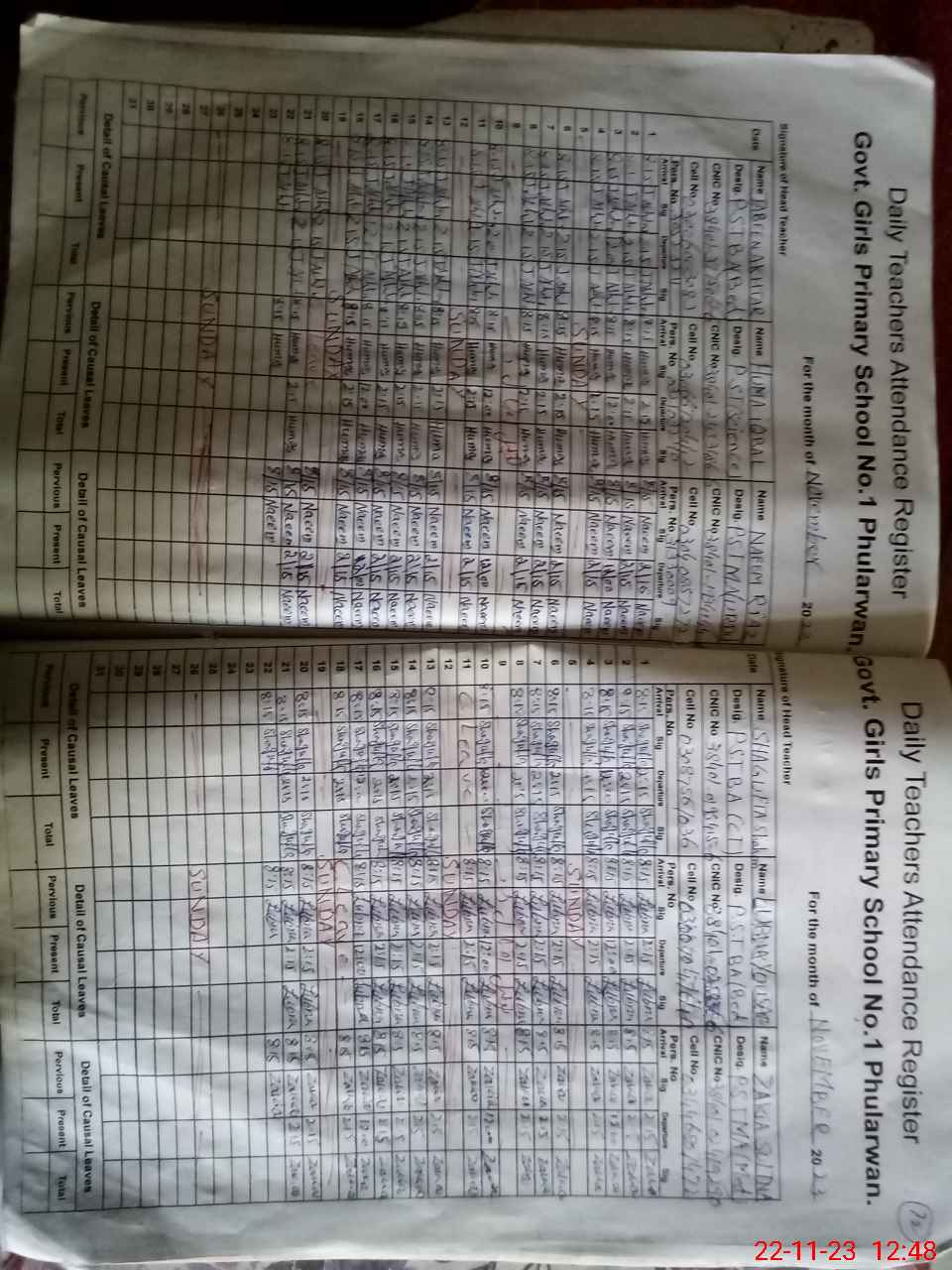 | CNIC | Full Name | Designation | R/C | Absence During Last Calender Month |