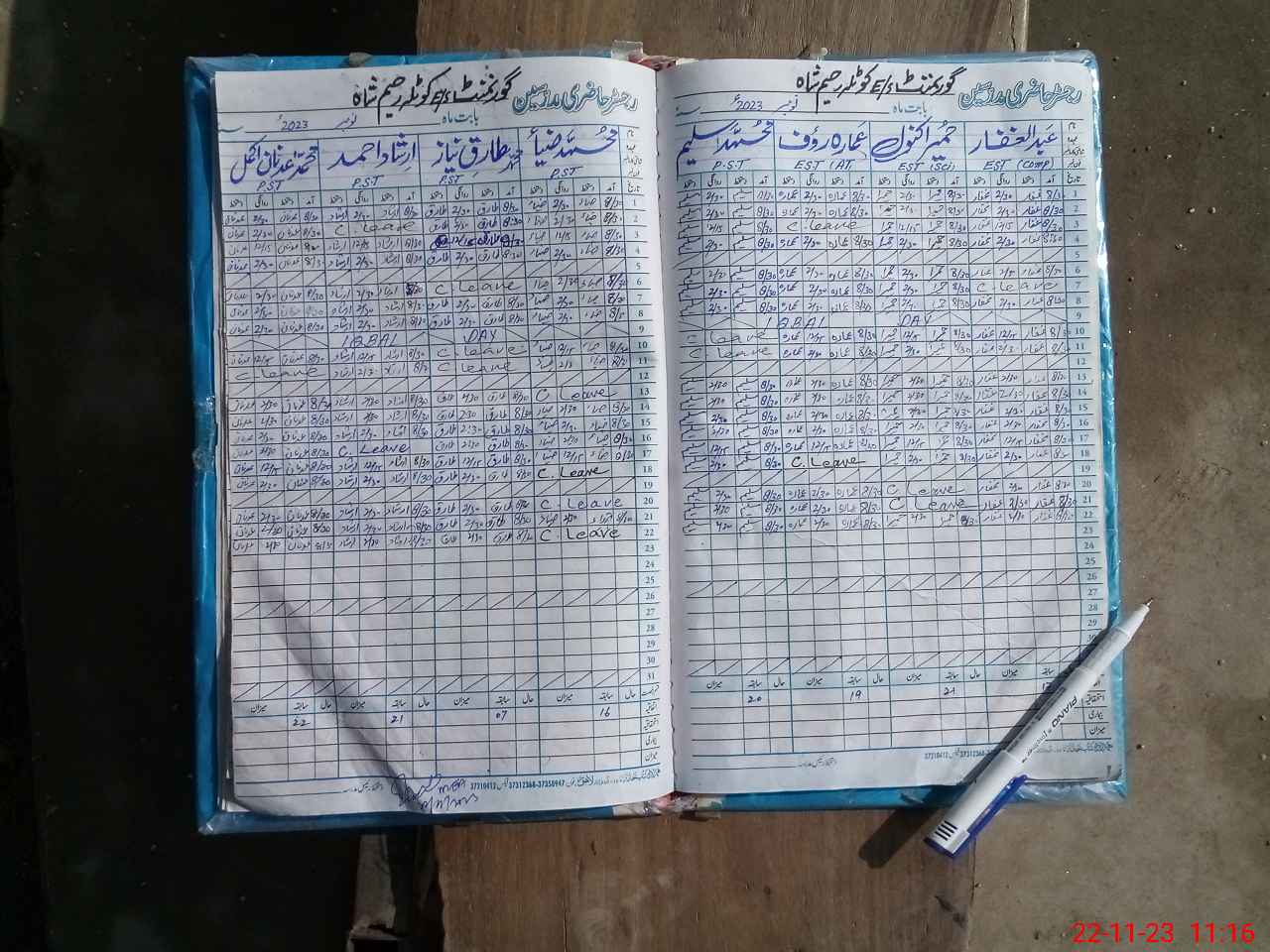 | CNIC | Full Name | Designation | R/C | Absence During Last Calender Month |